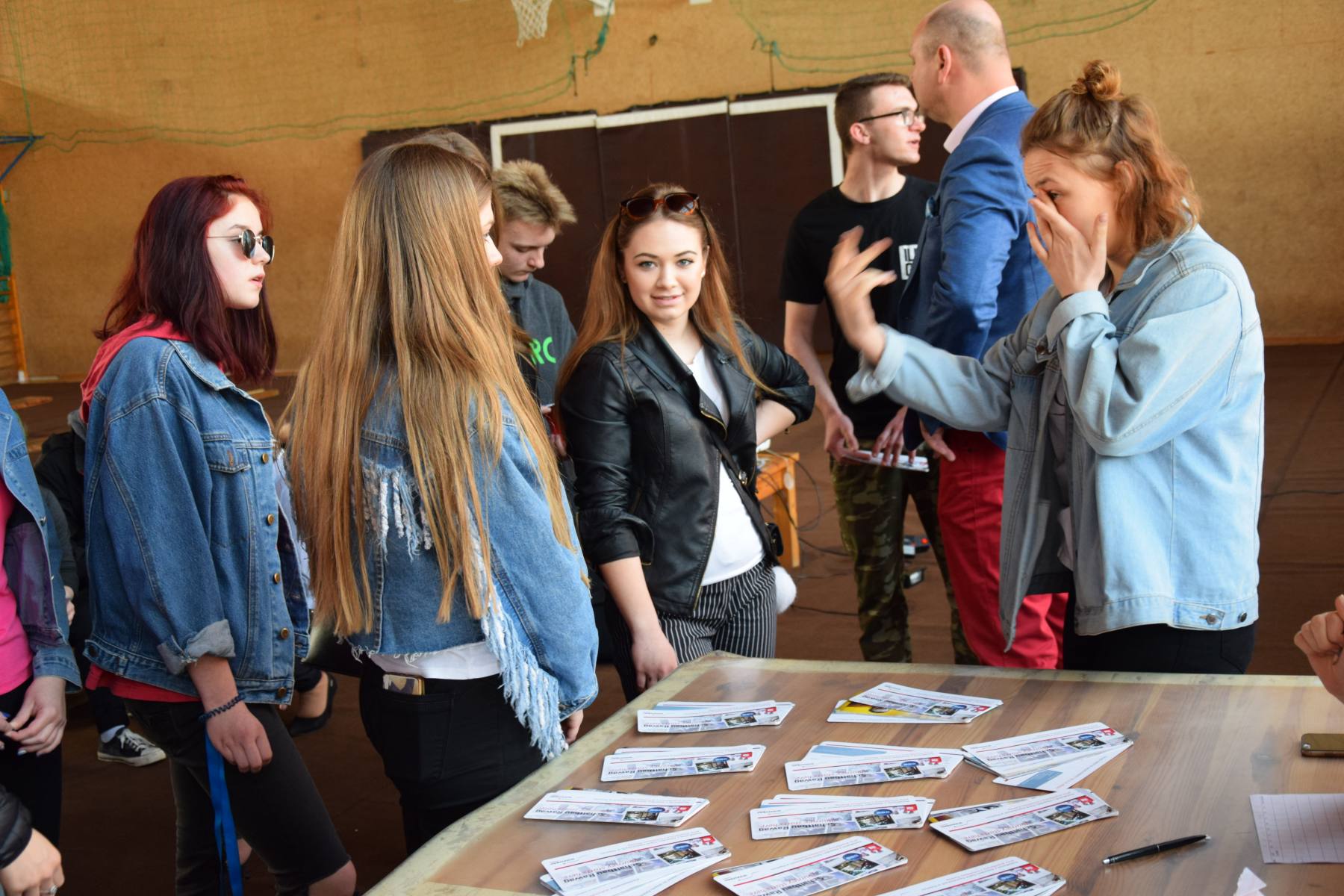 Na sali gimnastycznej ustawione zostały gabloty prezentujące sukcesy uczniów, trofea sportowe czy zdjęcia z najróżniejszych akcji promujących szkołę w środowisku lokalnym.