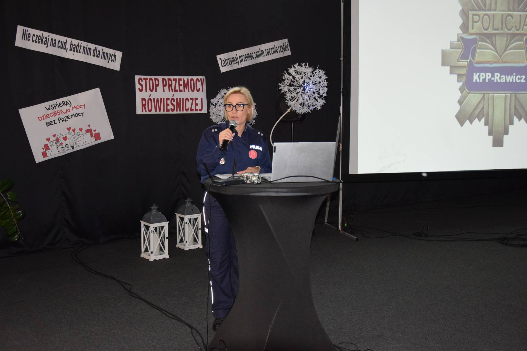 W dniu 17 listopada w naszej szkole odbyła się konferencja podsumowująca kampanię „Dzieciństwo bez przemocy”, zorganizowana przez Komendę Powiatową Policji w Rawiczu. W wydarzeniu uczestniczyli wyjątkowi goście, m.in. Wicekurator Oświaty Województwa Wielkopolskiego– Wojciech Szulc, Dyrektor Delegatury w Lesznie–Magdalena Jurkiewicz, Wicestarosta Rawicki -Jakub Moryson, a także uczniowie szkół z gminy Rawicz i powiatu rawickiego.