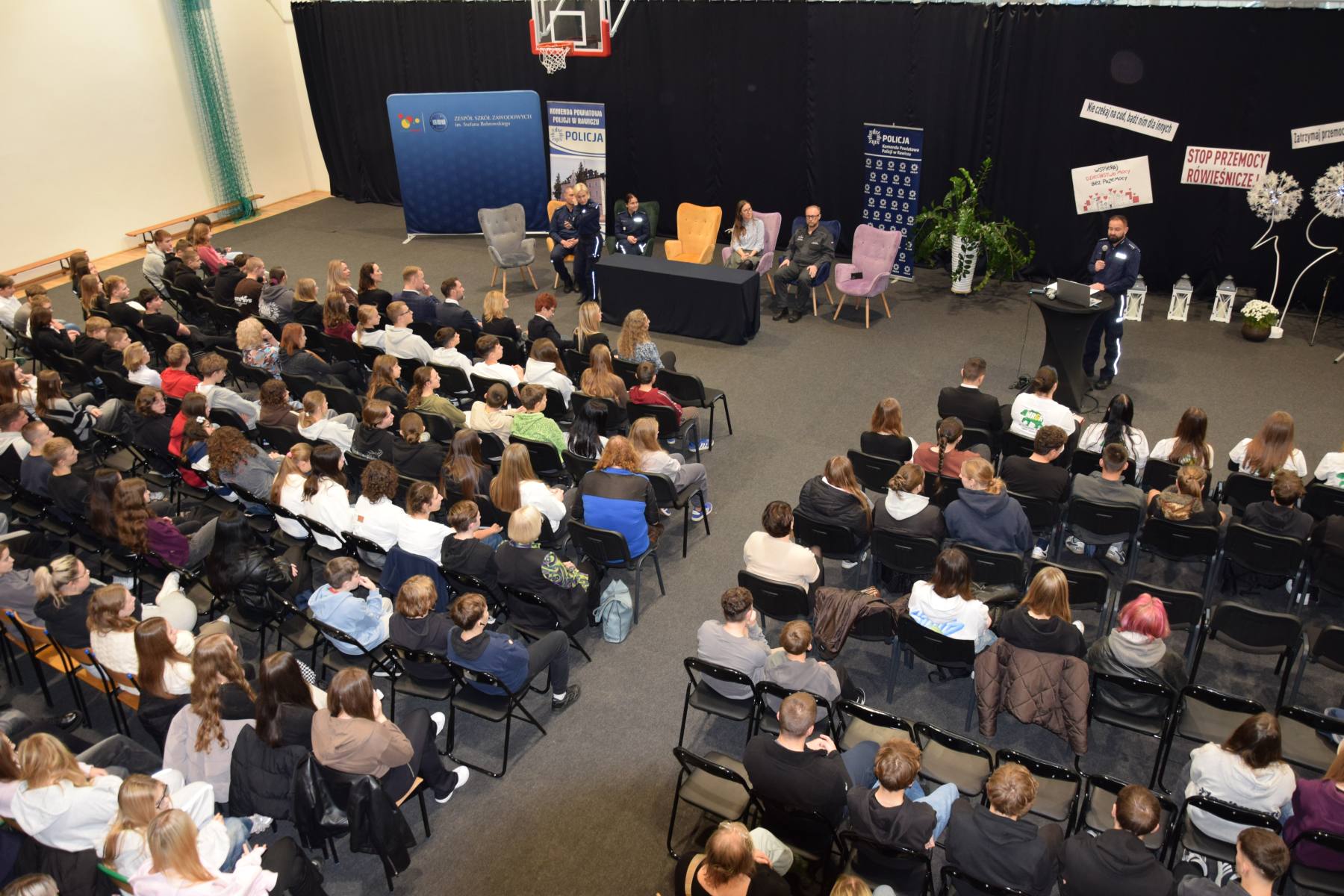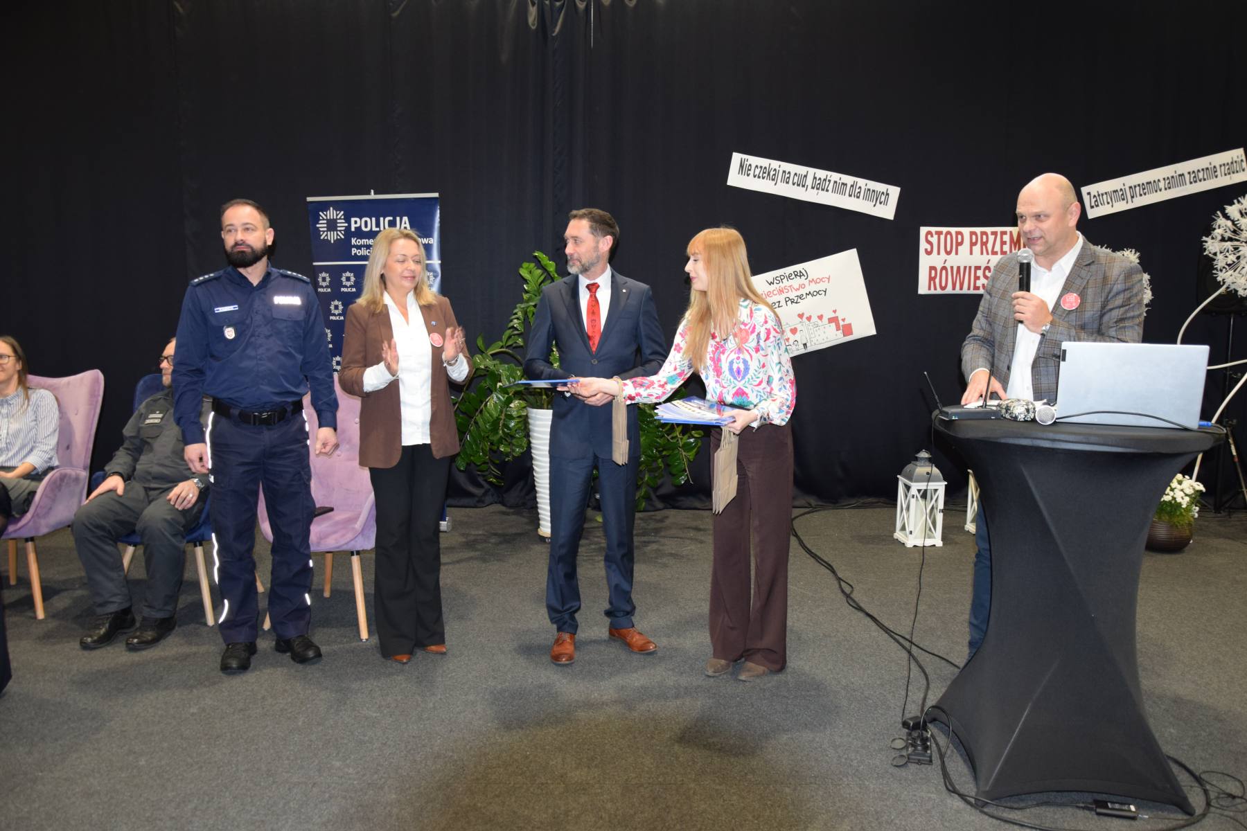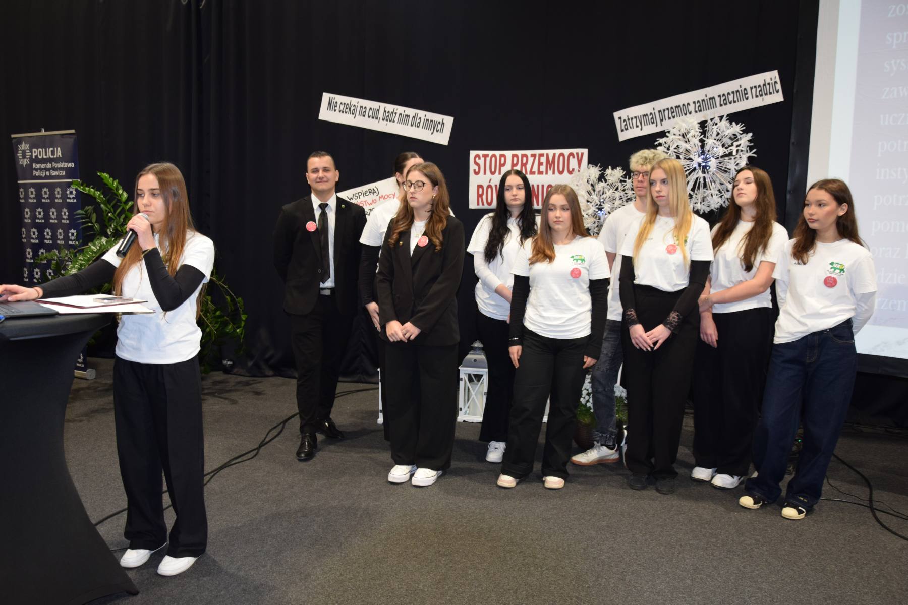 Podczas konferencji zaprezentowano wyniki ankiety dotyczącej przemocy rówieśniczej, którą przeprowadzono wśród dzieci i młodzieży. Uczestnicy mieli także okazję wysłuchać prelekcji: Majora Tomasza Kilarskiego i Nadkomisarza Mikołaja Banaszyka oraz Sędzi Aleksandry Dubiel, którzy omówili skalę zjawiska, sposoby reagowania oraz możliwości uzyskania wsparcia.
