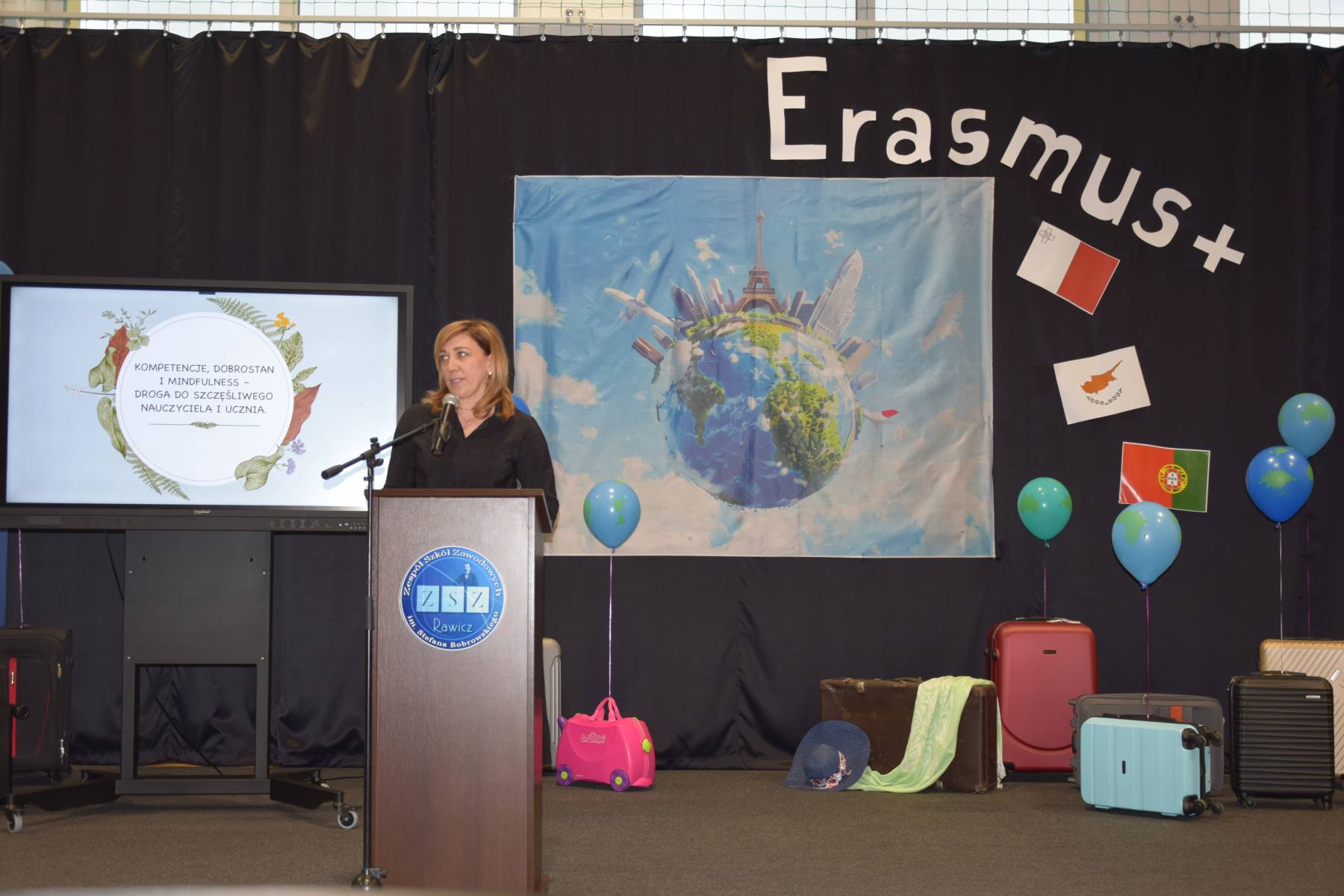 Jednak najważniejszą częścią konferencji były podsumowania dokonane przez samych uczestników trzech mobilności – szkoleń z Malty, Cypru i Portugalii. Magdalena Niedziałek i Maria Kośmider – Busz opowiedziały o doświadczeniach, jakie zdobyły w czasie szkolenia na Cyprze i korzyściach wdrożonych po powrocie. Paula Wałoszek i Rafał Jędrzejak ( reprezentanci grupy szkolącej się w portugalskim Viana do Castelo) przedstawili sposoby doświadczania dobrostanu i rozpowszechniania tego zjawiska w środowisku szkolnym. Sylwia Maciaszek – Basty, szkoląca się wraz z innymi nauczycielkami na Malcie, opowiedziała o roli komunikacji we współczesnym świecie, rozwoju osobistym i poszerzaniu kompetencji językowych i społecznych w czasie nauki języka angielskiego.