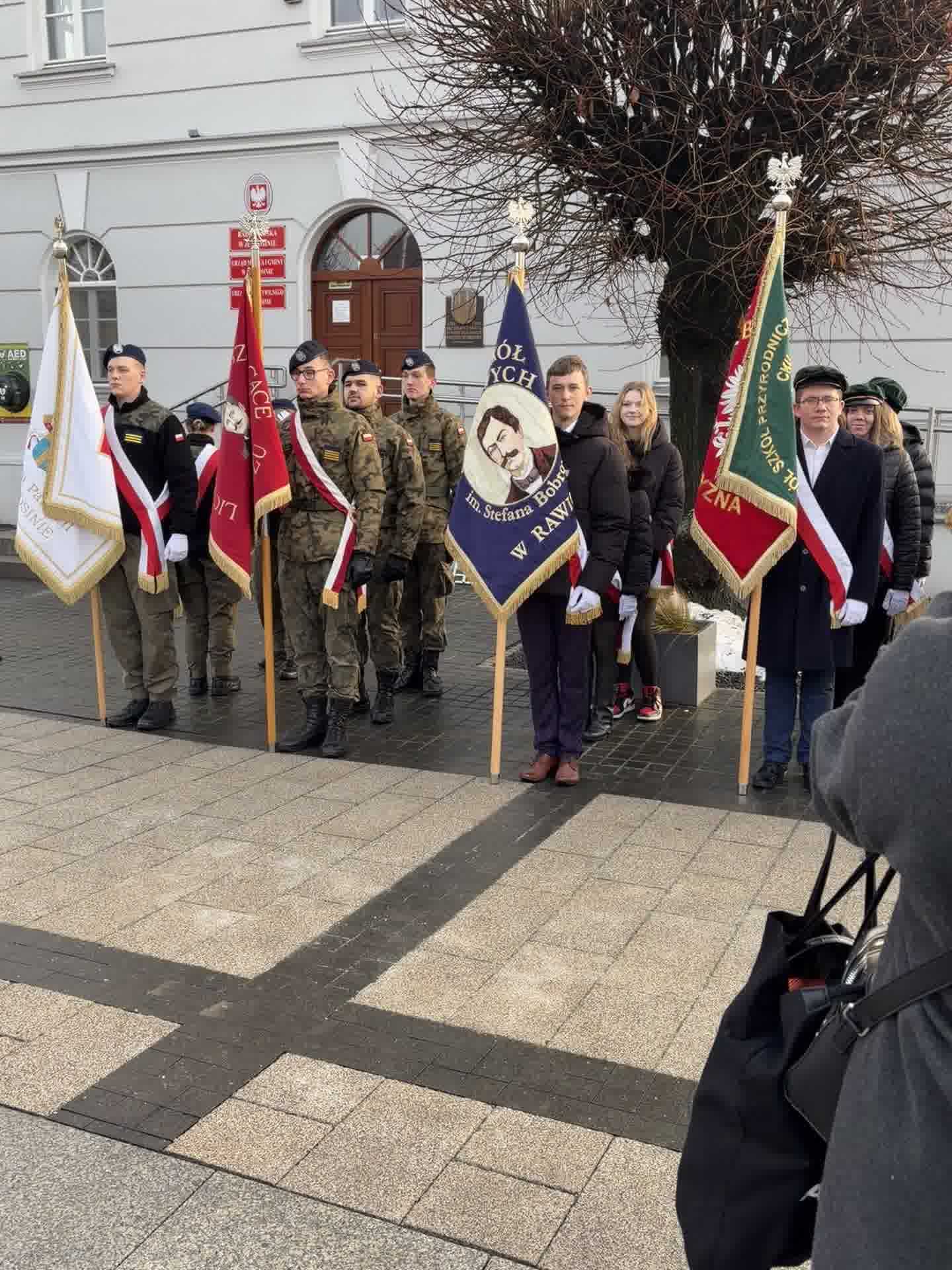 Podczas uroczystości naszą szkołę reprezentował również poczet sztandarowy, podkreślając rangę wydarzenia oraz znaczenie tej ważnej rocznicy dla lokalnej społeczności.