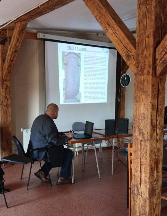 Zespół Szkół Zawodowych w Rawiczu przystąpił do nowego projektu „Szkoły Dialogu”. W jego ramach młodzież pozna osoby narodowości żydowskiej, które urodziły się w Rawiczu, a potem z niego wyemigrowały i zaznaczyły się w historii wielu krajów. Uczniowie poznają też miejsca związane z życiem mniejszości żydowskiej w naszym mieście na przestrzeni wielu lat. 23 kwietnia br. rozpoczęliśmy projekt, który potrwa do września tego roku. Spotkaliśmy się z Panem Tomaszem Dybą -Prezesem Towarzystwa Przyjaciół Rawicza. Na pierwszym spotkaniu opowiedział on młodzieży o mniejszości żydowskiej w Rawiczu i jej losach. Korzystając z własnych prezentacji omówił działania, jakie czekają nas w najbliższym czasie. Po zakończeniu prezentacji udaliśmy się na spacer po miejscach związanych z tą mniejszością. Zobaczyliśmy cmentarz bądź miejsce po nim w Sierakowie, płytę nagrobną rodziny Olendorf, a także udaliśmy się na Plac Synagogi Rawickiej, gdzie pan Tomasz Dyba omówił historię jej powstania oraz zniszczenia przez Niemców. W projekcie tym uczestniczy 28 szkół z Polski.