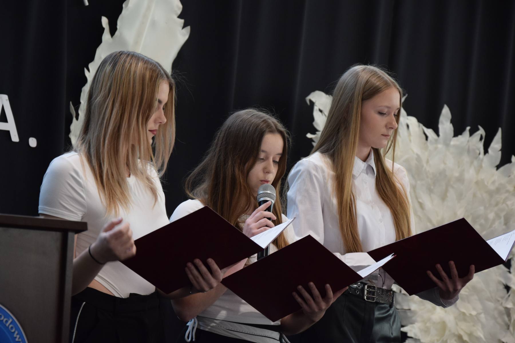 Uroczystość prowadziła p. Anna Cwojdzińska – wicedyrektor ds. dydaktyczno- wychowawczych. Pogratulowała młodzieży osiągnięć i ukończenia szkoły, wszystkim życzyła pomyślności w dorosłym życiu. Słowa uznania skierowała także w stronę nauczycieli, wychowawców, a także rodziców.