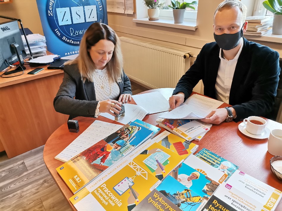 W ramach programu „Czas zawodowców BIS- zawodowa Wielkopolska” nasza szkoła otrzymała podręczniki, które będą wykorzystywane przez uczniów klas technikum budowlanego. Wartość przekazanych książek to 18. 000zł. Oficjalne przekazanie 570 sztuk podręczników odbyło się w miniony piątek ( 18 grudnia br.) w obecności przedstawicieli Urzędu Marszałkowskiego Województwa Wielkopolskiego, Starostwa Powiatowego w Rawiczu oraz szkoły. Kolejnym etapem wsparcia dla szkoły będzie doposażenie w sprzęt komputerowy również dla tego samego kierunku.