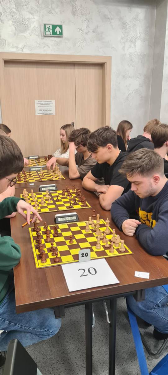 Po zdobyciu wicemistrzostwa powiatu w szachach drużynowych nasi szachiści pojechali reprezentować szkołę w Mistrzostwach Województwa Wielkopolskiego w Szachach Drużynowych w ramach Licealiady. Rozgrywki odbyły się 17.12.2024 r. w Centrum Pozarządowych Organizacji Sportowych w Poznaniu. W zawodach wzięło udział 46 drużyn z całego województwa. Każda drużyna liczyła 4 osoby (w tym minimum 1 kobieta).
